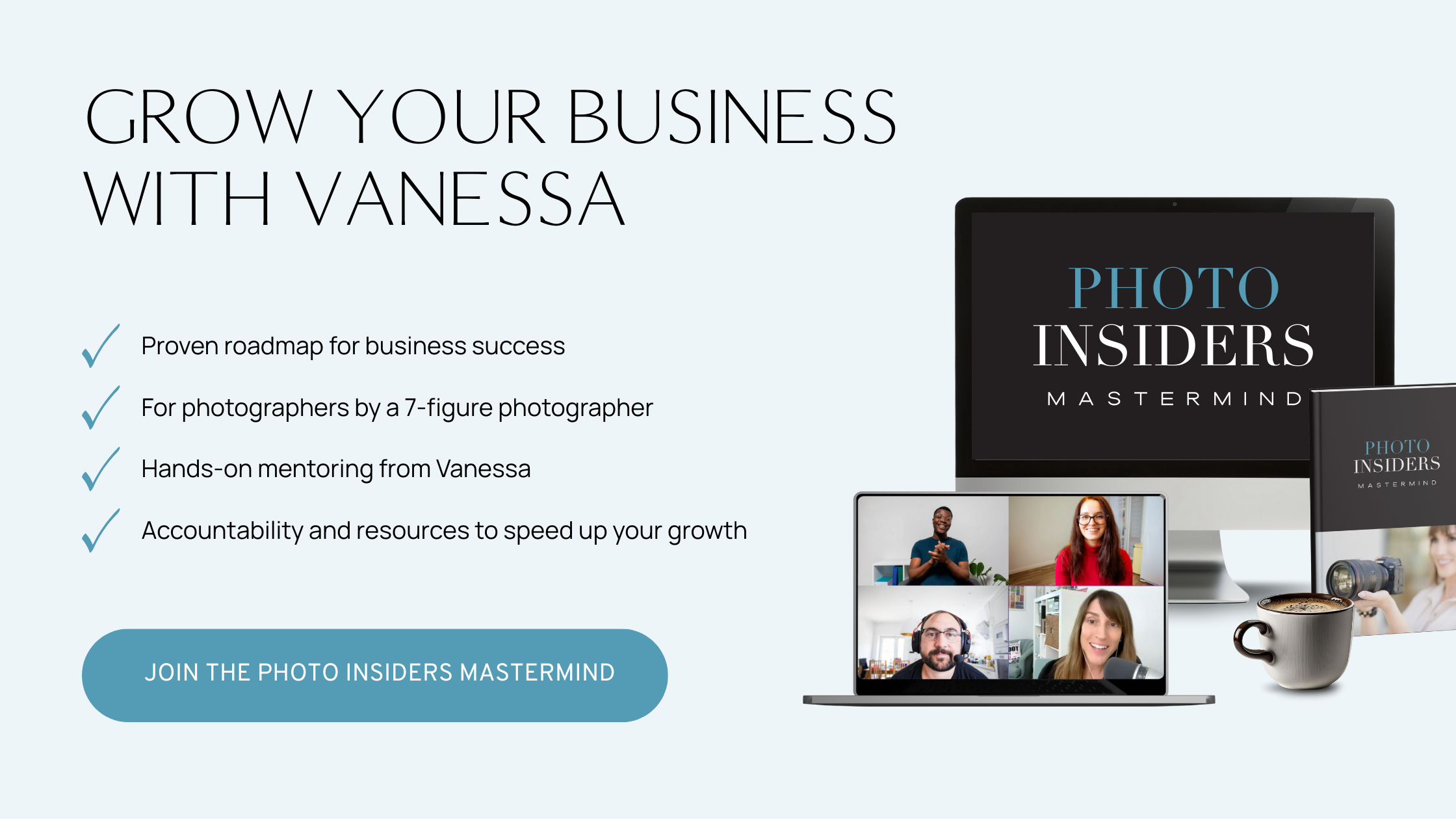 My Mastermind program is designed for photographers who want to scale, find freedom, and build a business they truly love. Inside, you’ll get personalized coaching, step-by-step guidance, and the community support you need to thrive.